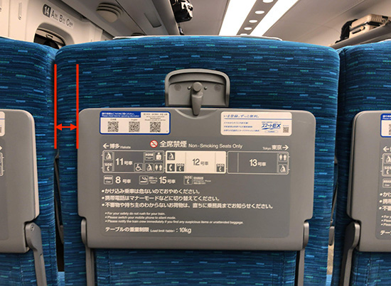 座席の端までの長さに注目するとよくわかる。
