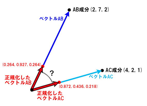 これが内積を使って角度を割り出す仕組みだ。