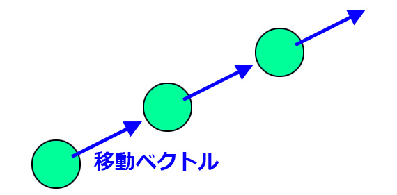 移動ベクトルによって進んでいる物体の場合は