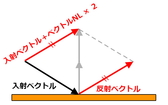 「入射ベクトル+ベクトルNL × 2」は