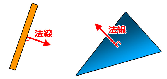 法線とは壁面に対して垂直に伸びるベクトルのことで、