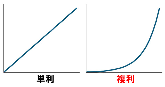 複利だと増えた金額分も元本となって利子を生むため、